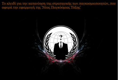 Σε αυτή τη σελίδα, θα παρουσιαστεί μια ολοκληρωμένη επισκόπηση της πραγματικής φύσης της Νέας Παγκόσμιας Τάξης και της παγκοσμιοποιητικής στρατηγικής, για την οικοδόμησή της και την παρουσίασή της στο κοινό.