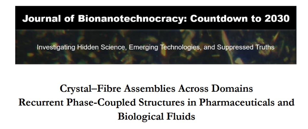Μελέτη του Δρα. David Nixon που εντοπίζει τη συνεχή παρουσία συγκροτημάτων κρυσταλλικών ινών (CFA) —γεωμετρικών δομών προσκολλημένων σε ίνες— σε διάφορα προϊόντα, από αναισθητικά και εμβόλια mRNA έως ανθρώπινα υγρά (αίμα και ούρα).
