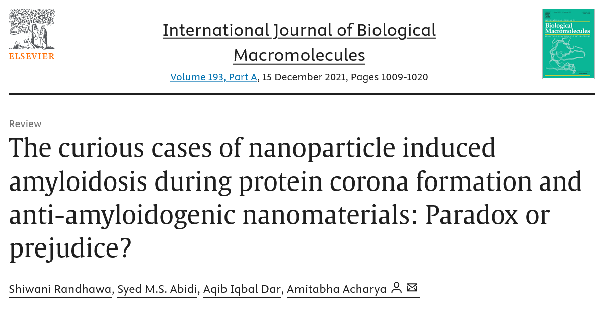 Από το ScienceDirect — Οι περίεργες περιπτώσεις αμυλοείδωσης, που προκαλείται από νανοσωματίδια, κατά τη διάρκεια του σχηματισμού πρωτεϊνικής κορώνας και αντι-αμυλοειδογόνα νανοϋλικά: Παράδοξο ή προκατάληψη;