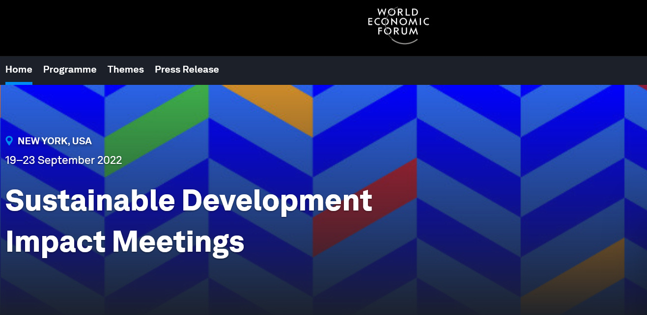 Το Παγκόσμιο Οικονομικό Φόρουμ πραγματοποίησε τις συναντήσεις για τον αντίκτυπο της βιώσιμης ανάπτυξης προς τα τέλη Σεπτεμβρίου 2022, ταυτόχρονα με τη Γενική Συνέλευση των Ηνωμένων Εθνών.